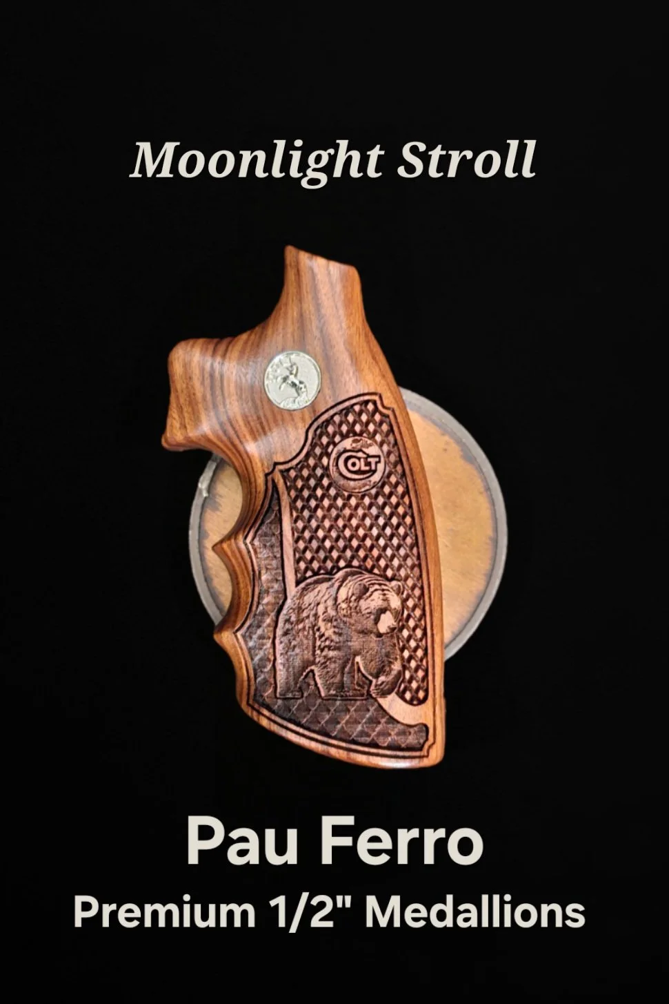 OEM • Colt King Cobra/Viper/Cobra Extended Target "Legacy Design" Dragonscales/Stipple Dark Walnut Medallions