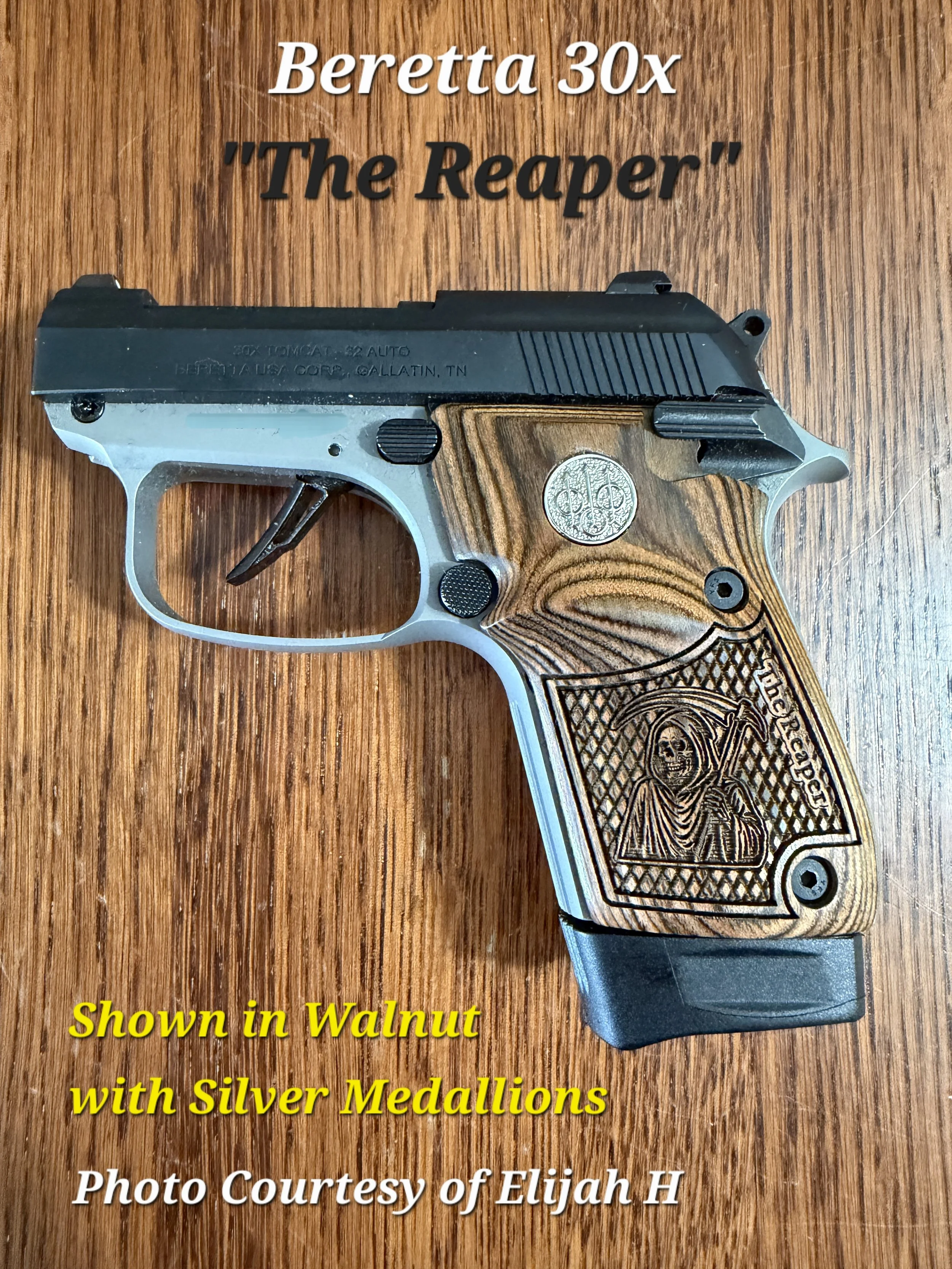 Beretta 30x/20x Tomcat/Bobcat Grips Checkered inset "The Reaper" Optional Custom Trident Logos or Medallions • All Colors
