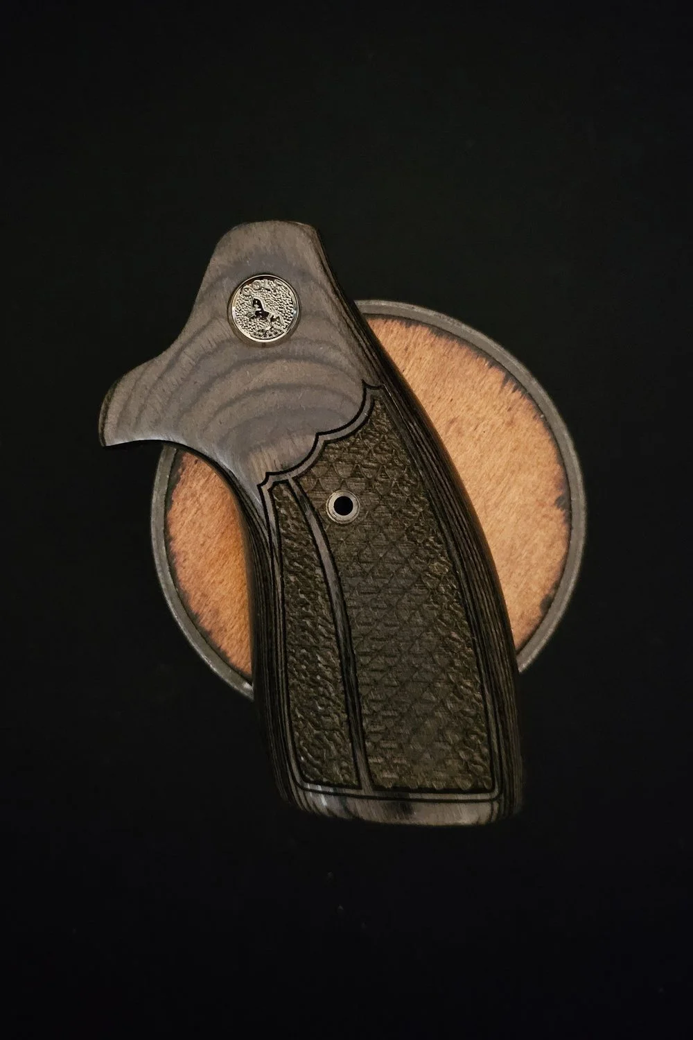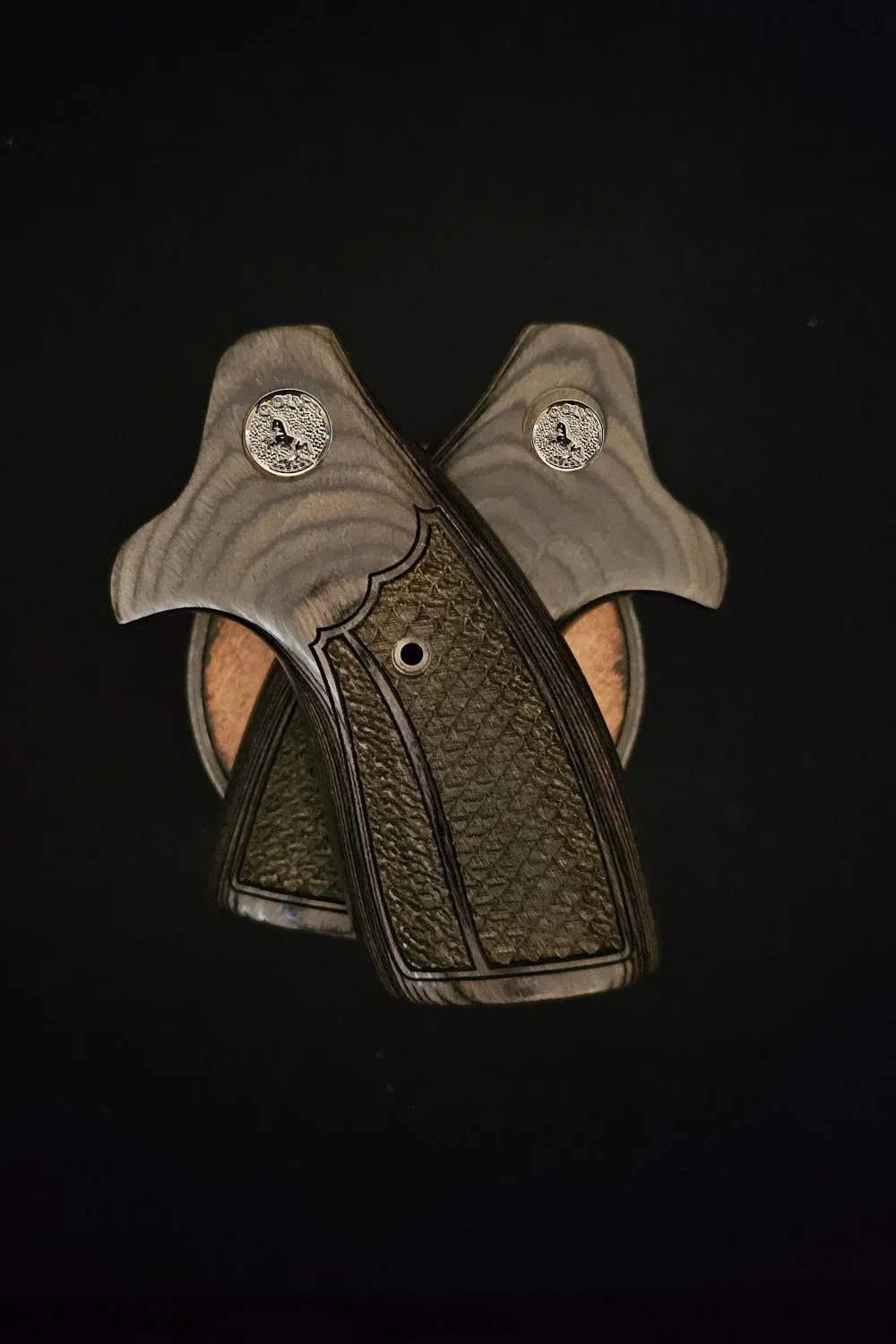 Colt King Cobra 2019-present / Viper 2024+ / Cobra 2017-present Extended Target Grips with our Dragonscales and Stipple in Two Part Legacy Design, These are the FULL SIZE TARGET GRIPS. Available in Dark Walnut with Optional 1/2” Silver or Gold Medallions, or 15mm .999 Silver or 24kt Gold Plate Medallions.. *Note: Netticks Grips are manufactured using Engineered Wood, Color names are meant as identifiers and do not indicate a wood type.